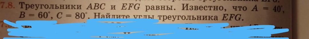 Раз эти два треугольника равны, то угол Е = углу А, угол F = углу В, угол G = углу С.