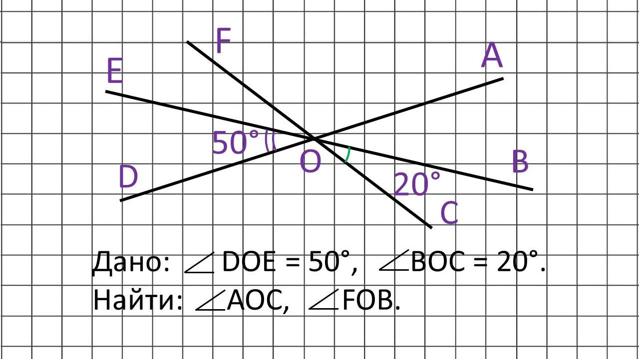 Рассмотрите рисунок. Найдите градусные меры углов. Введите два числа без пробела, единицы измерения градусы вводить не надо.