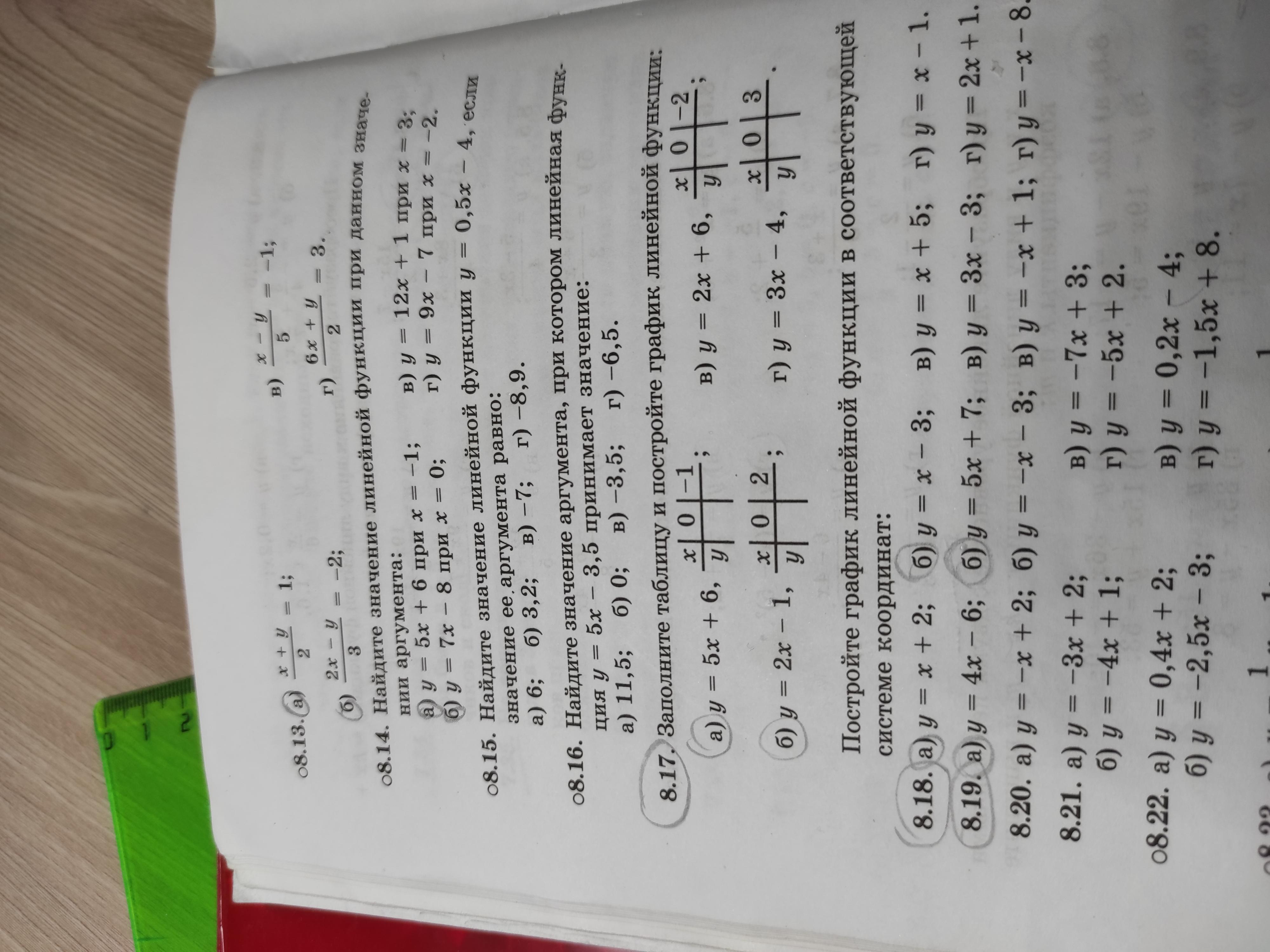 Подставить в уравнение значения х, вычислить значения у, записать в таблицу: