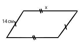 Пусть одна из неизвестных сторон равна х, тогда смежная с ней сторона по условию равна 14 см.