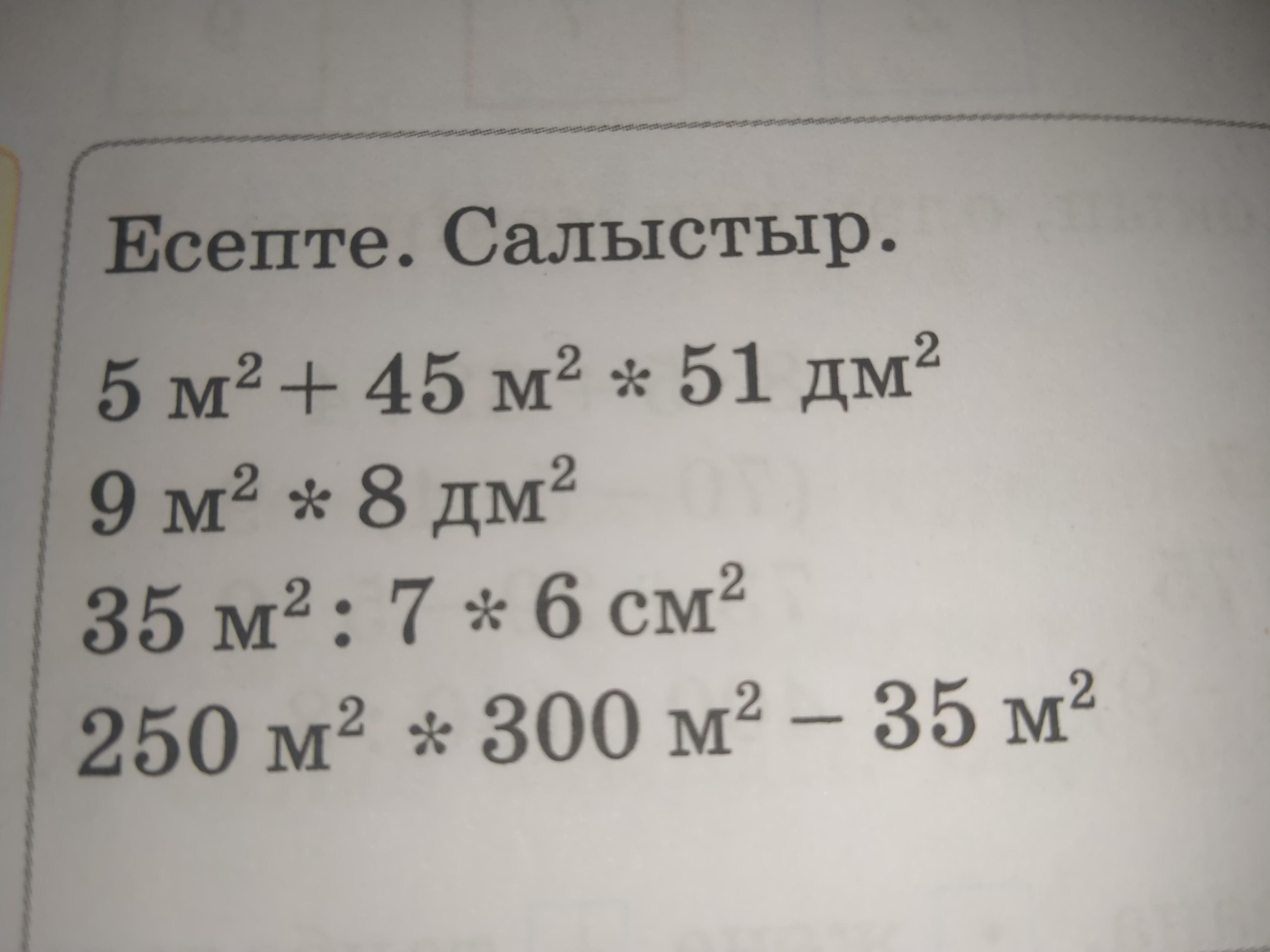 1) 5 м2 + 45 дм2 = 500 дм2 + 45 дм2 = 545 дм2 > 51 дм2