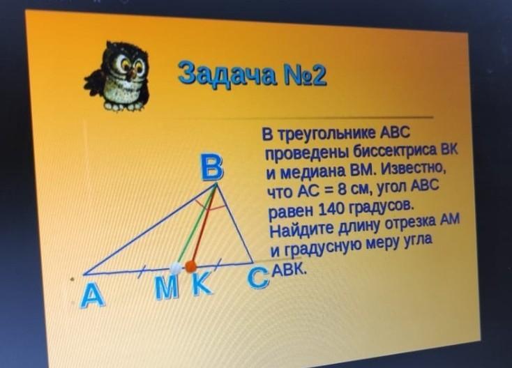 АМ = 8см : 2 = 4см, так как медиана ВМ делит отрезок АС на две равные части ( АМ = МС )