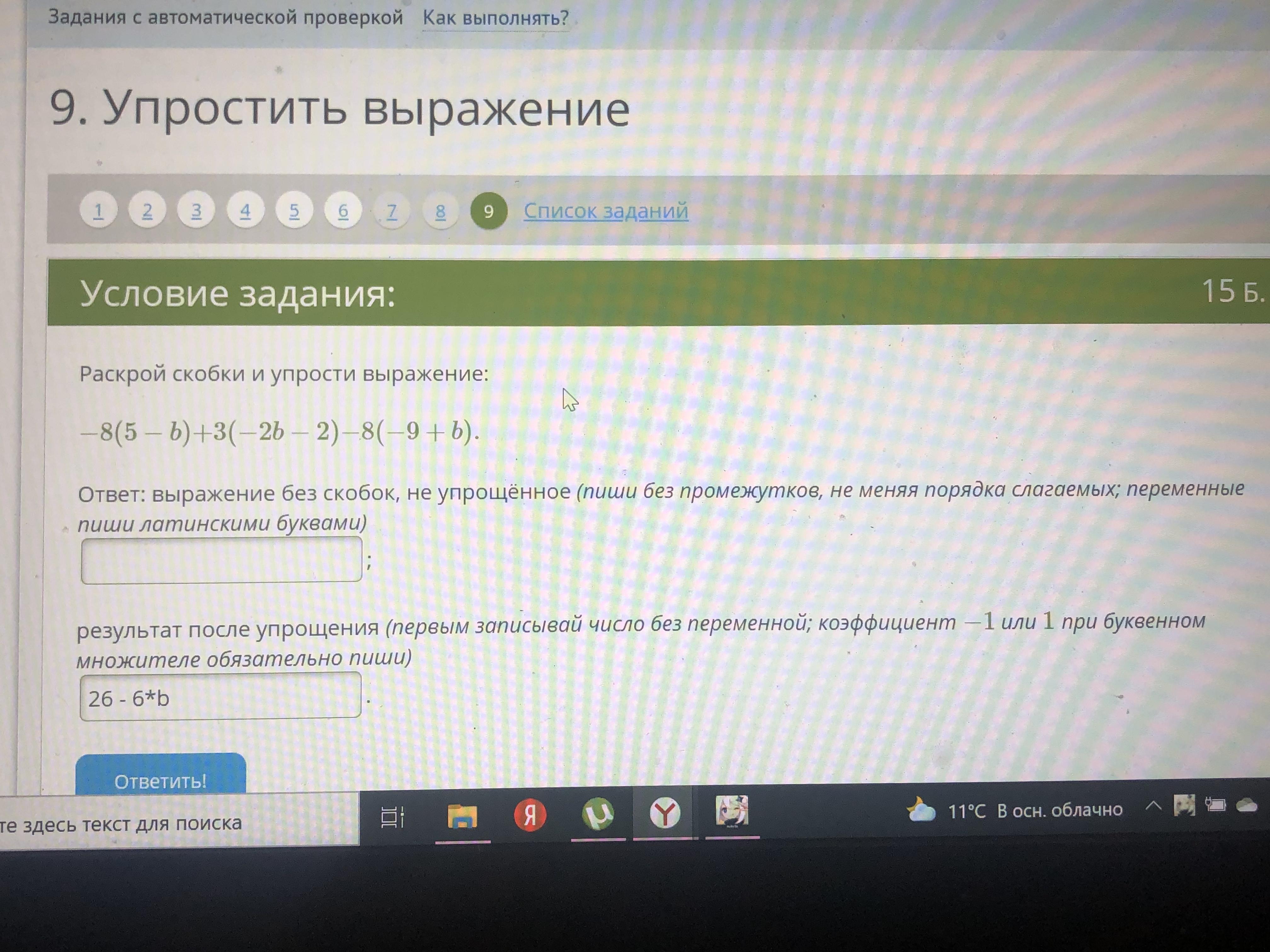 -8(5-b)+3(-2b-2)-8(-9+b)