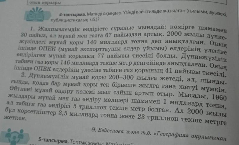 7-тапсырма. Мәтін бойынша энергетикалық ресурс түрлерінің көлемін диаграммаға түсіріңдер.