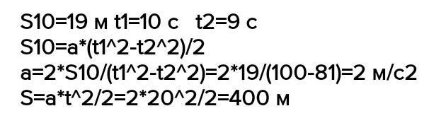 Поезд отошел от станции и в течение 20 с двигался равноускоренно. Найти путь, пройденный поездом за это время, если известно, что за десятую секунду он прошел путь равный 5 м.