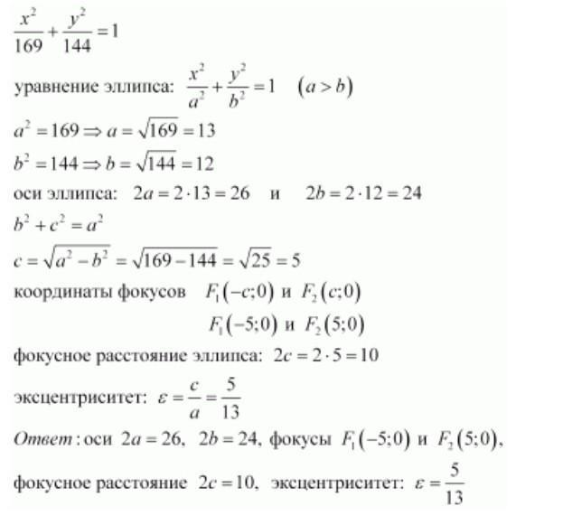 Найти координаты вершин, фокусов,