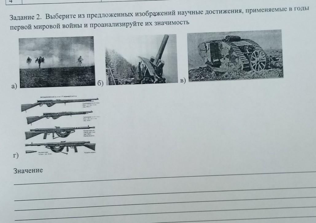 выберите из предложенных изображений научные достижения применяемые в годы Первой мировой войны и проанализируйте их значимость.
