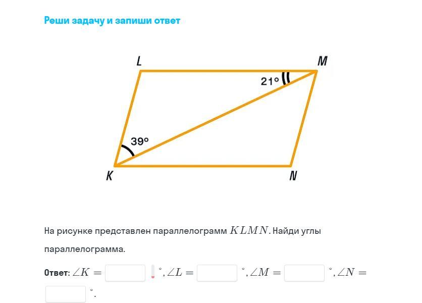 угол К=60⁰ L=120⁰ M=60⁰ N=120⁰