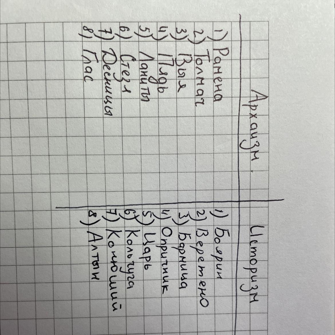 Распределите слова на две группы (историзмы и архаизмы): боярин, рамена, толмач, веретено, выя, пядь, ланиты, бармица, стезя, десница, опричник, царь, кольчуга, глас, конюший, алтын.
