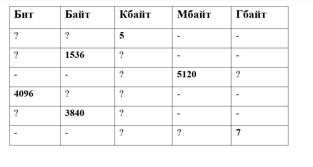 6)384 кбайт,384000000 мбайт,7 гбайт