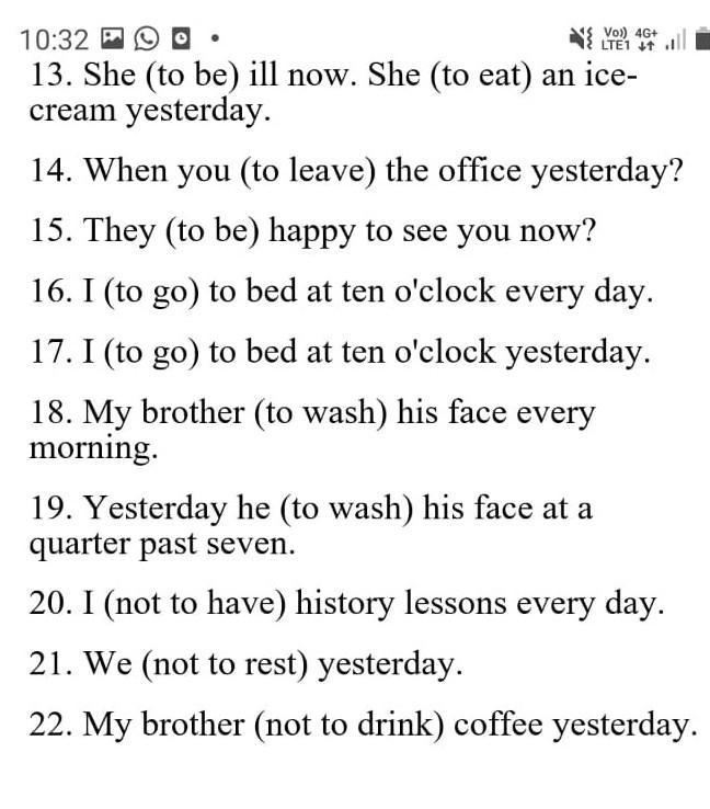 просто ко всем словам которые в скобках нужно добавь окончание ed