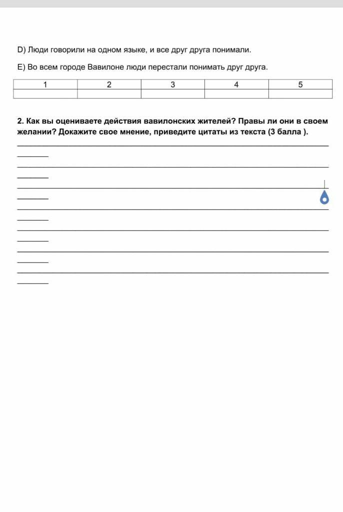 2. Я считаю что жители Вавилона сделали неправельно. Потому что они хотели добраться до самого неба где находиться бог, я думаю что это высокомерное желание . В итоге богу не понравилась их идея и наслал на землю великую бурю.