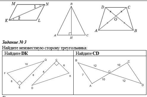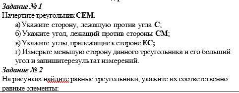 На рисунках найдите равные треугольники, укажите их соответственно равные элементы: