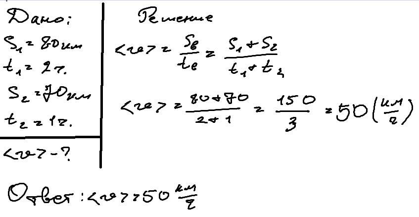 автомобиль первую часть пути 80км прошел за 2ч. вторую часть пути равную 70 км прошол за 1 ч. с какой средней скоростью двигался автомобиль на всём пути