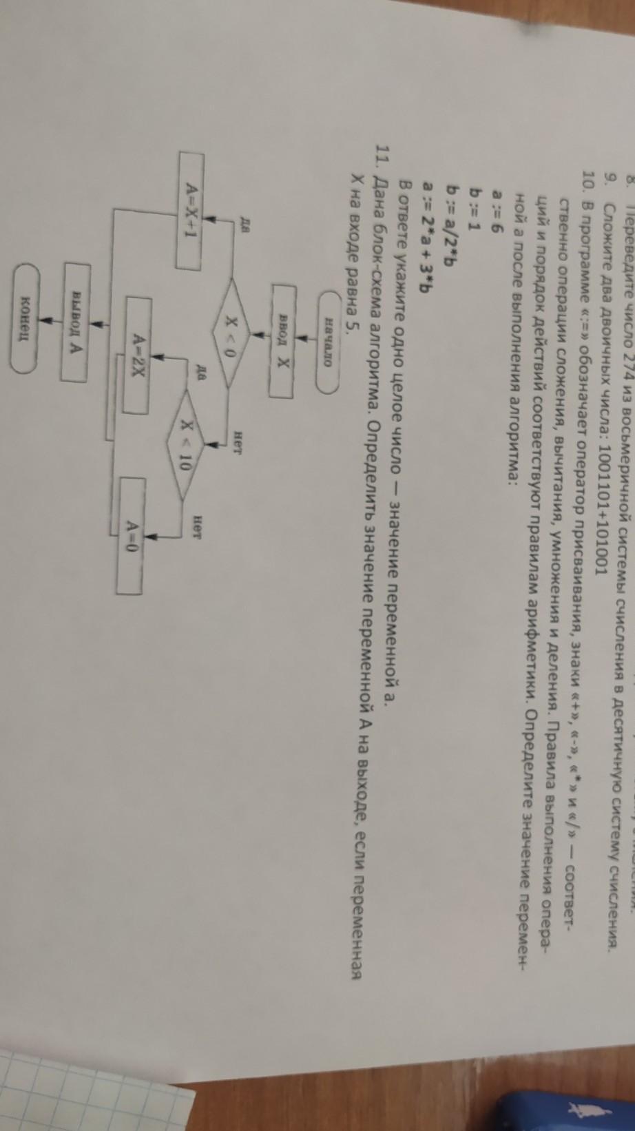 10. В программе «:=» обозначает оператор присваивания, знаки «+», «-», «*» и «/» — соответственно операции сложения, вычитания, умножения и деления. Правила выполнения операций и порядок действий соответствуют правилам арифметики. Определите значение переменной a после выполнения алгоритма: