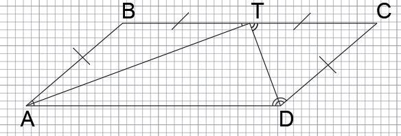помогите пожалуйста. В параллелограмме ABCD AT-биссектриса угла BAD, DT-биссектриса угла ADC BT=8 см T принадлежит BC Найдите стороны параллелограмма