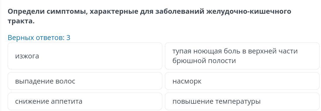 Определи симптомы характерные для заболеваний желудочно кишечного тракта