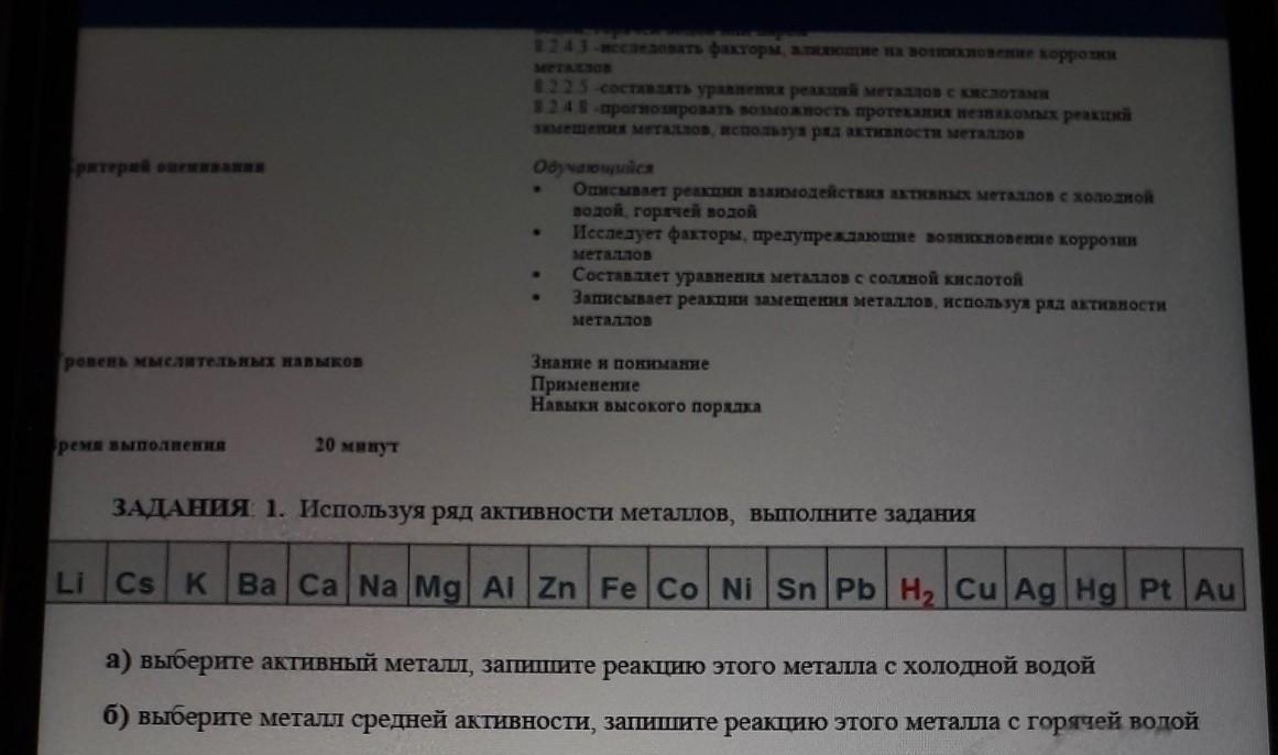б) выберите металл средней активности, запишите реакцию этого металла с горячей водой