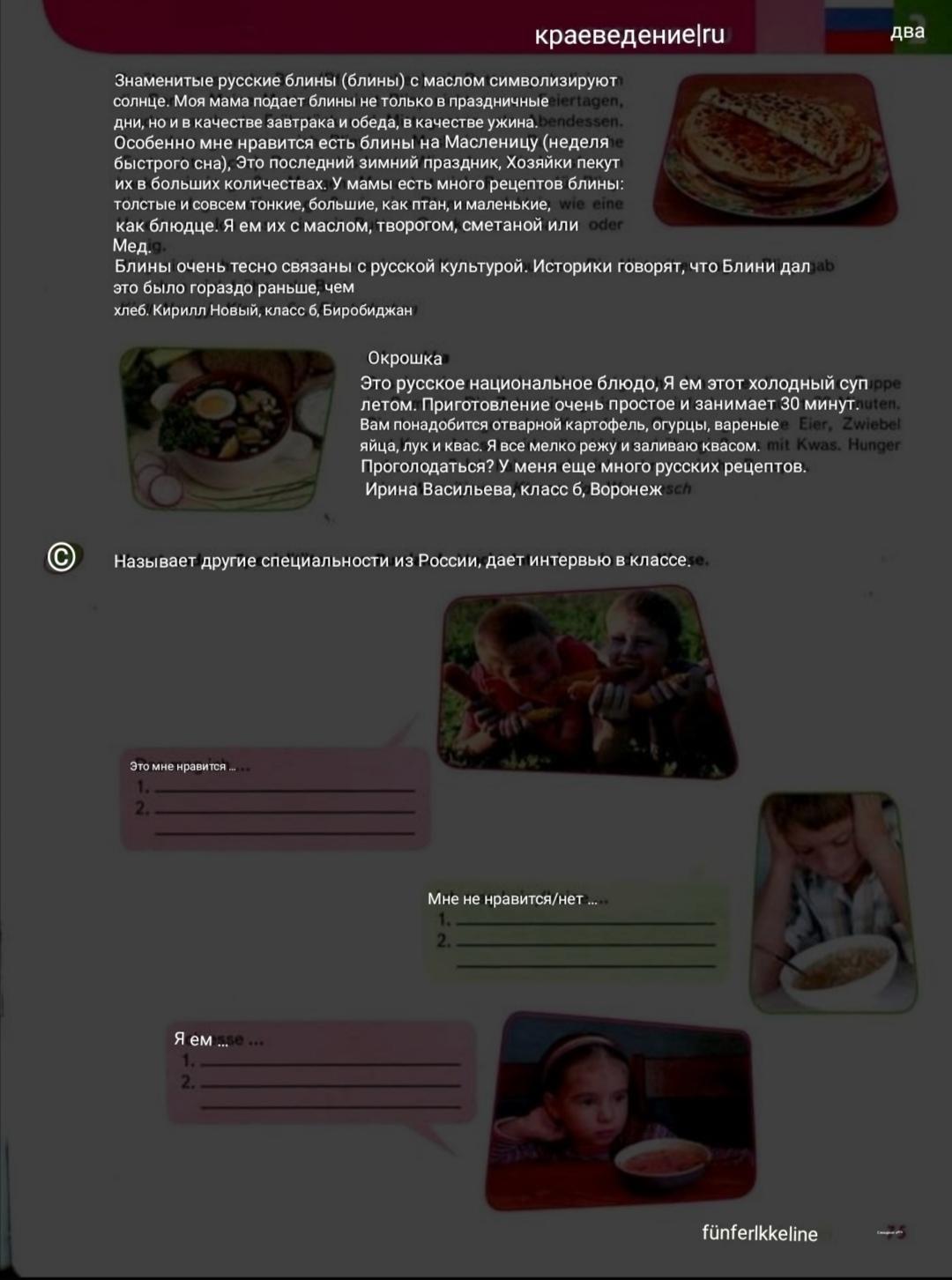 nennt andere spezialitäten aus russland macht interviews in der klasse(срочно даю 40 баллов)
