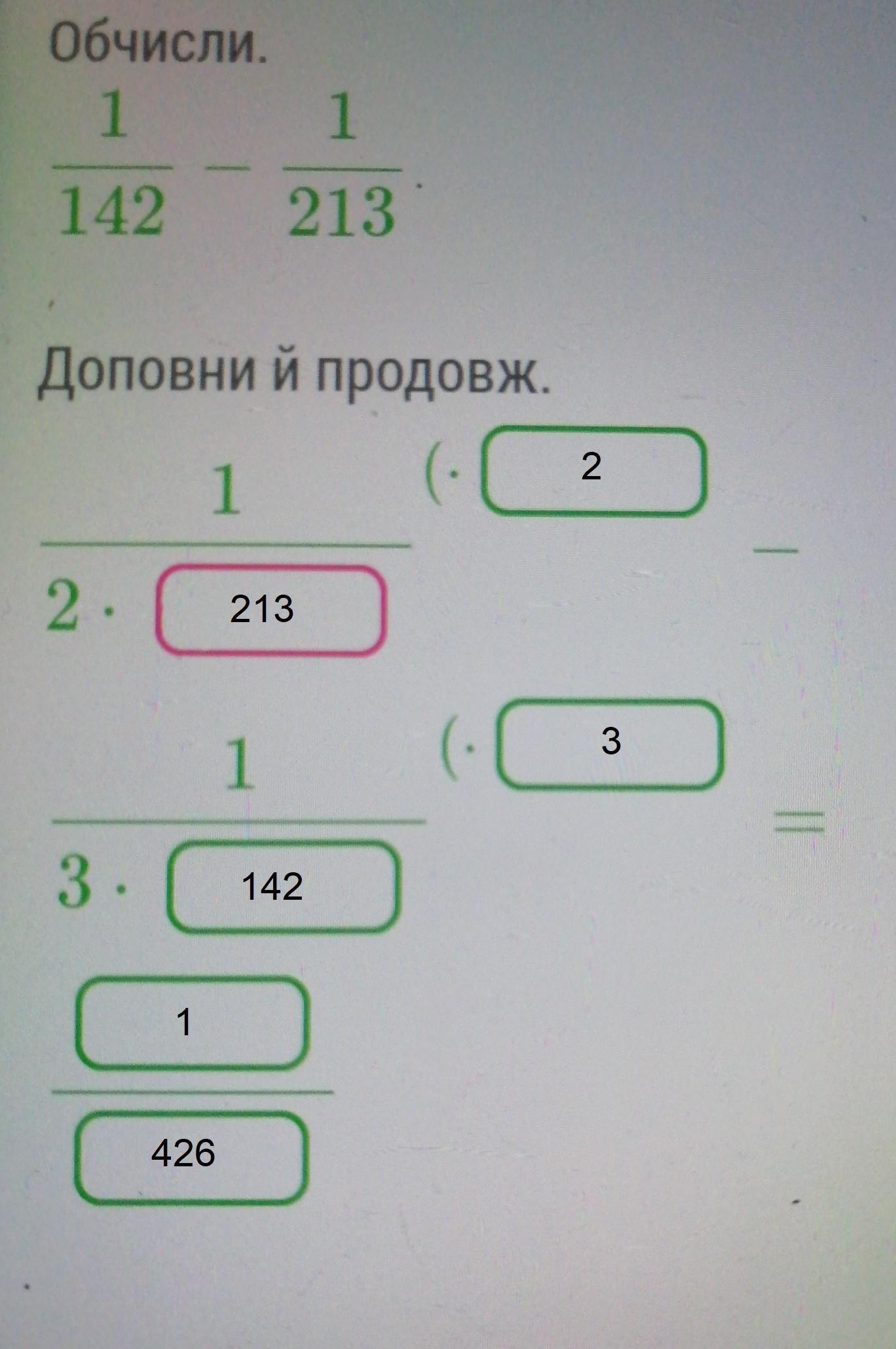 я понял мысль) но числитель первого числа это 2*71, второго - 3*71. Соответственно, числитель первого умножаем на 3, а второго на 2. И всё правильно получается( без минуса) = 1/426