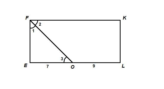 Найдите периметр прямоугольника EFKL, если биссектриса угла F пересекает сторону FL в точке O и делит ее на отрезки EO=7cm и OL=9 см