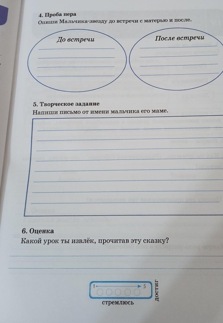 4. Проба пера Опиши Мальчика-звезду до встречи с матерью и после. До встречи После встречи вот это всё с можете заделать пожалуйста даю вам все мои баллы !