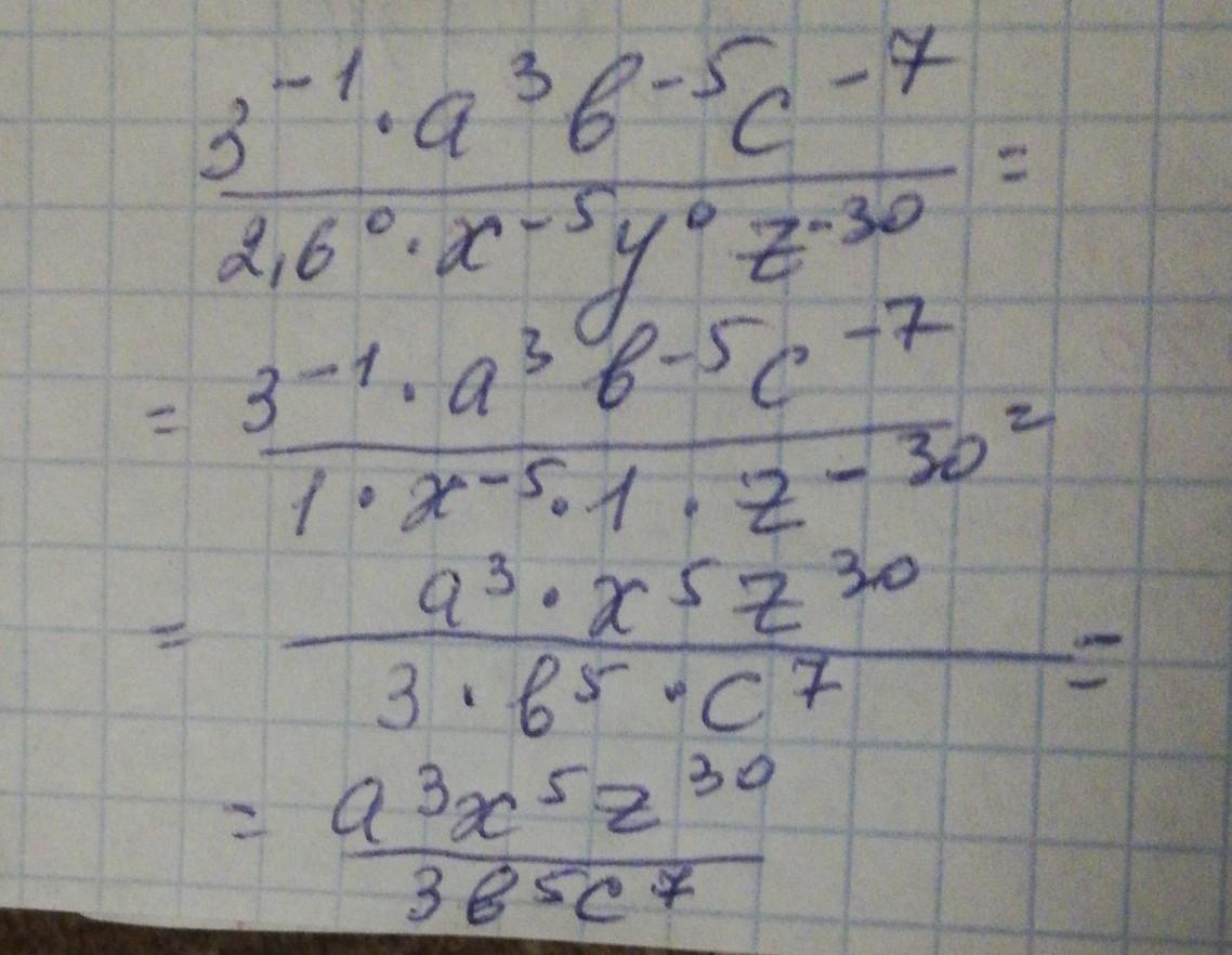 5.Преобразуйте выражение так, чтобы оно не содержало отрицательных и нулевых показателей: 3-а?ь-c-7 -S -50-30 2,6°/-5,0 х у 2 {3}
