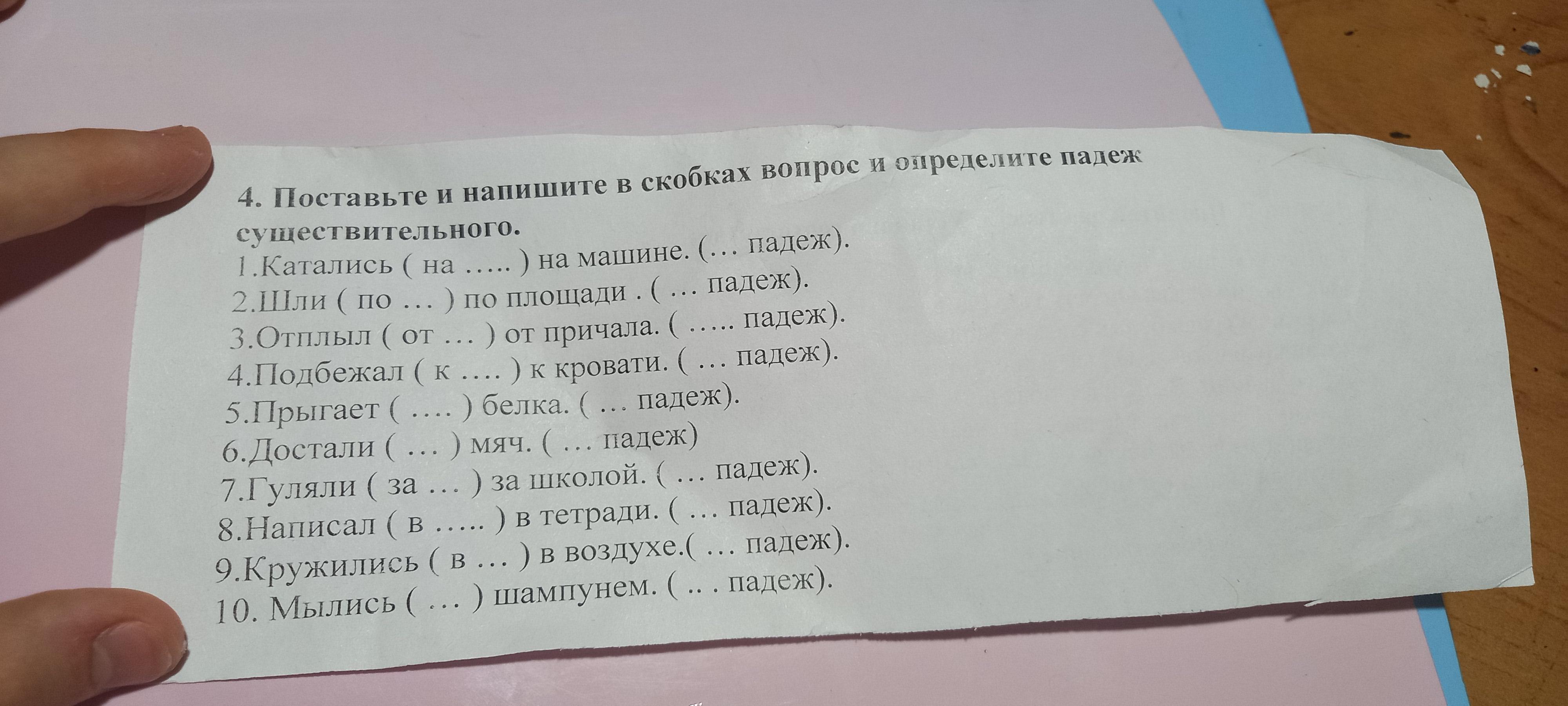 ПОСТАВТЕ И НАПИШИТЕ В СКОБКАХ ВОПРОС И ОПРЕДЕЛИТЕ ПАДЕЖ. ПОЖАЛУЙСТА ПОЖАЛУЙСТА ПОЖАЛУЙСТА ПОЖАЛУЙСТА ПОЖАЛУЙСТА даю 70 балов