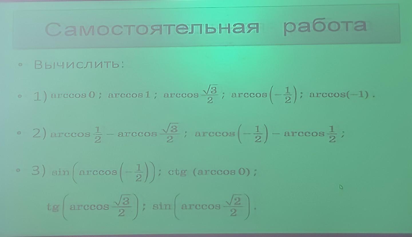 1) arccos(0) = п / 2 (90°)