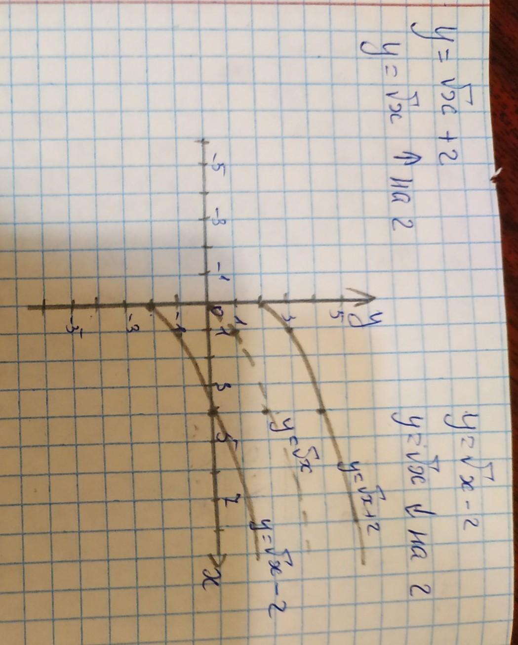 функция у=√х+2 это функция у=√х поднята на 2 вгору а вторая наоборот вниз
