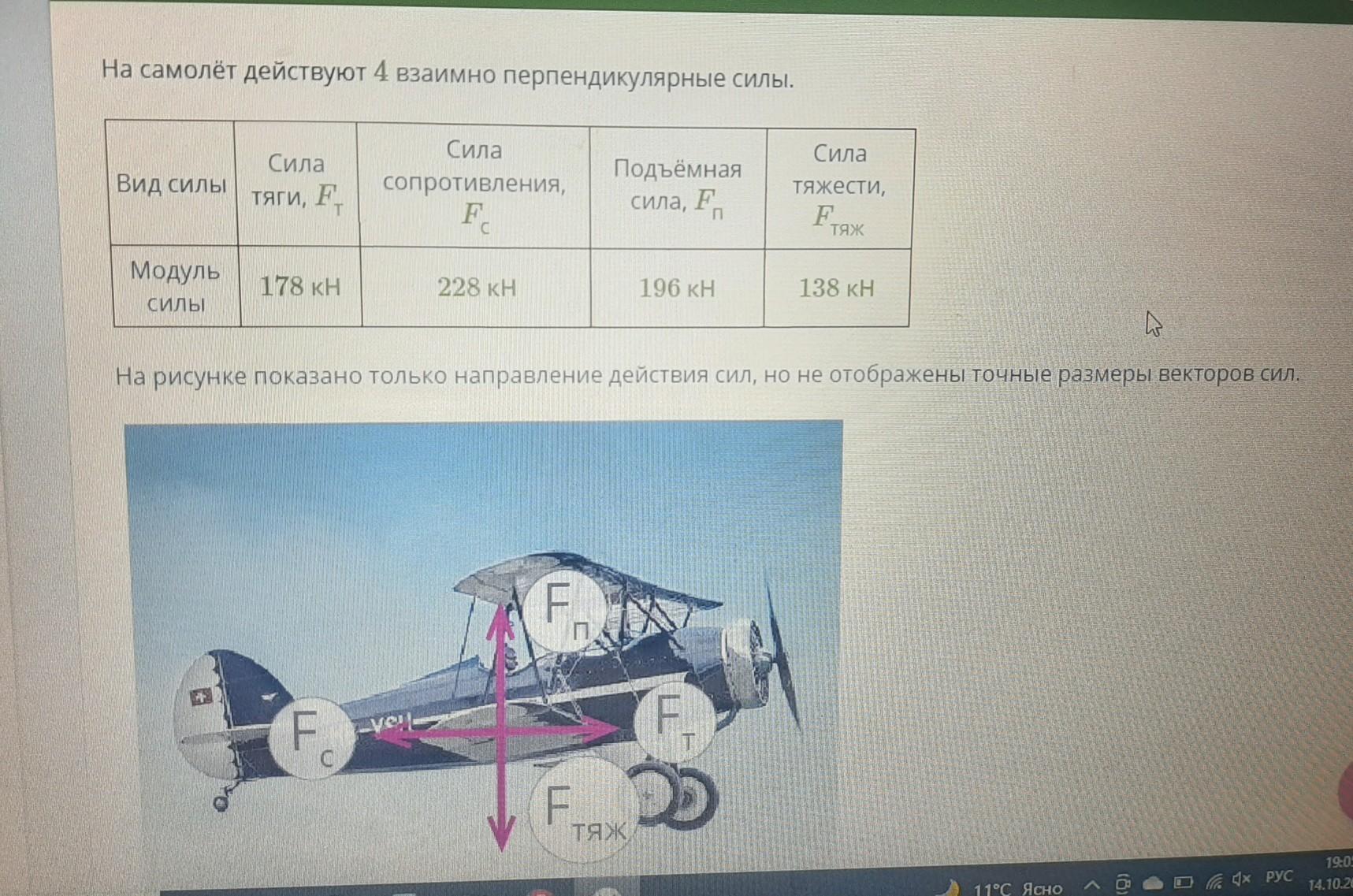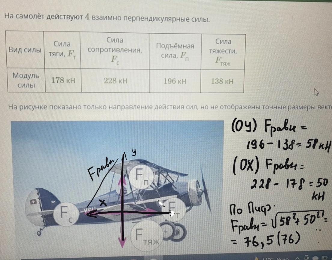 найдите результирующую силу в горизонтальном положении и в вертикальном, а также результирующую силу, действующую на самолётт, пожалуйста, 50 баллов, срочно, физика 9 класс