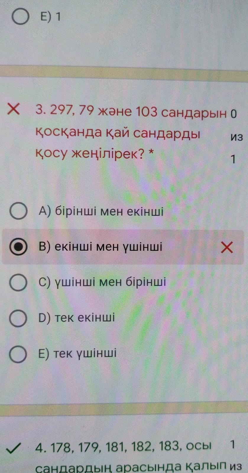 297, 79 Жане 13 сандарын косканда Кай сандарды косу женилирек болады ?А) биринши мен екинши; С) ушинши мен биринши; Д)тек екинши; Е) тек ушинши