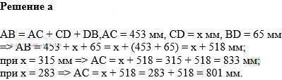 а) AB, если AC = 453 мм, CD = x мм и DB = 65 мм. Найдите значе-