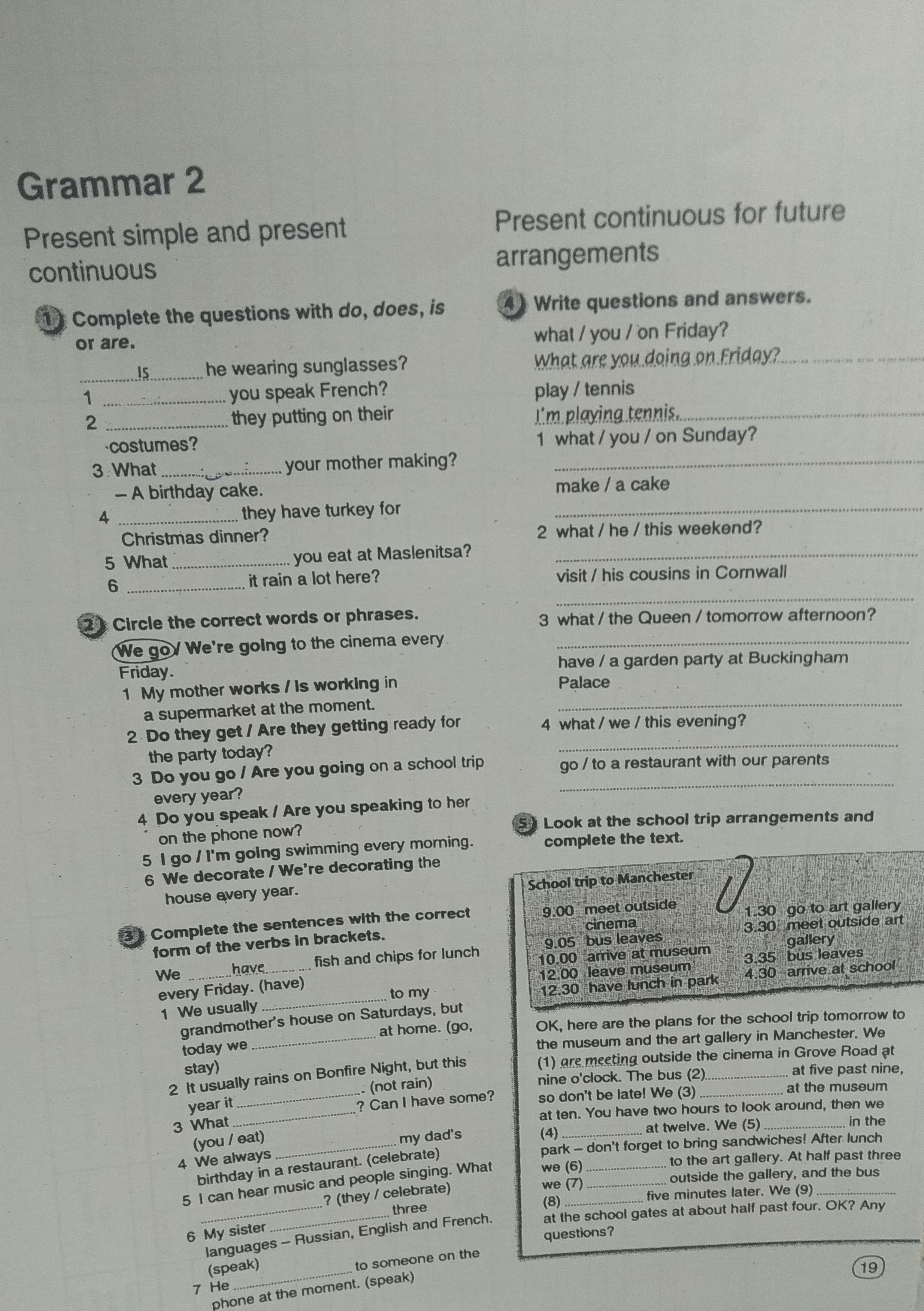 1)go2)isnot rain3)do you eat 4)celebrate5) they're celebrate 6)speaks7)speaks.