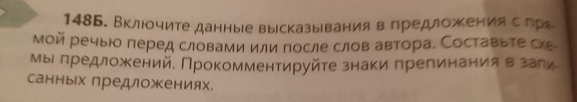 148Б. Включите данные высказывания в пре мы предложений. Прoкoммeнтируйте знаки пр- Мой речью перед словами или после слов авто- санных предложениях. II
