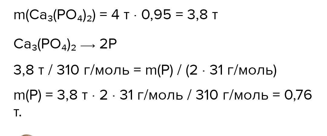 скільки фосфору можна добути з 4 т фосфориту що містить 5%домішок