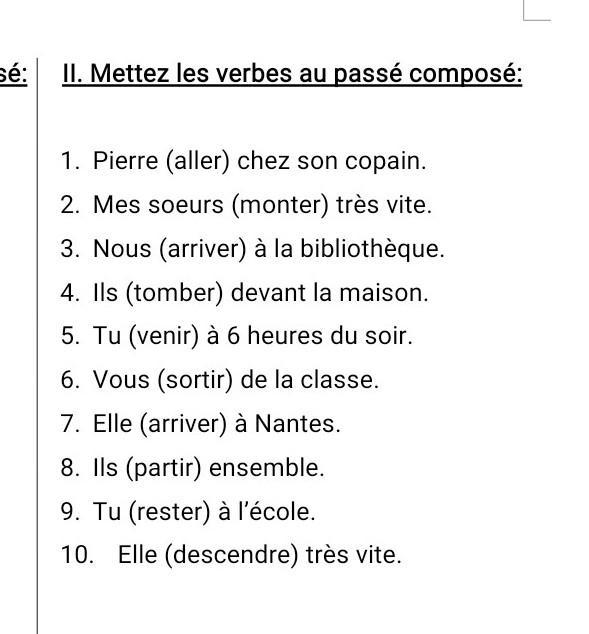 нужно на французском поставить правильно глаголы прошедшого времени