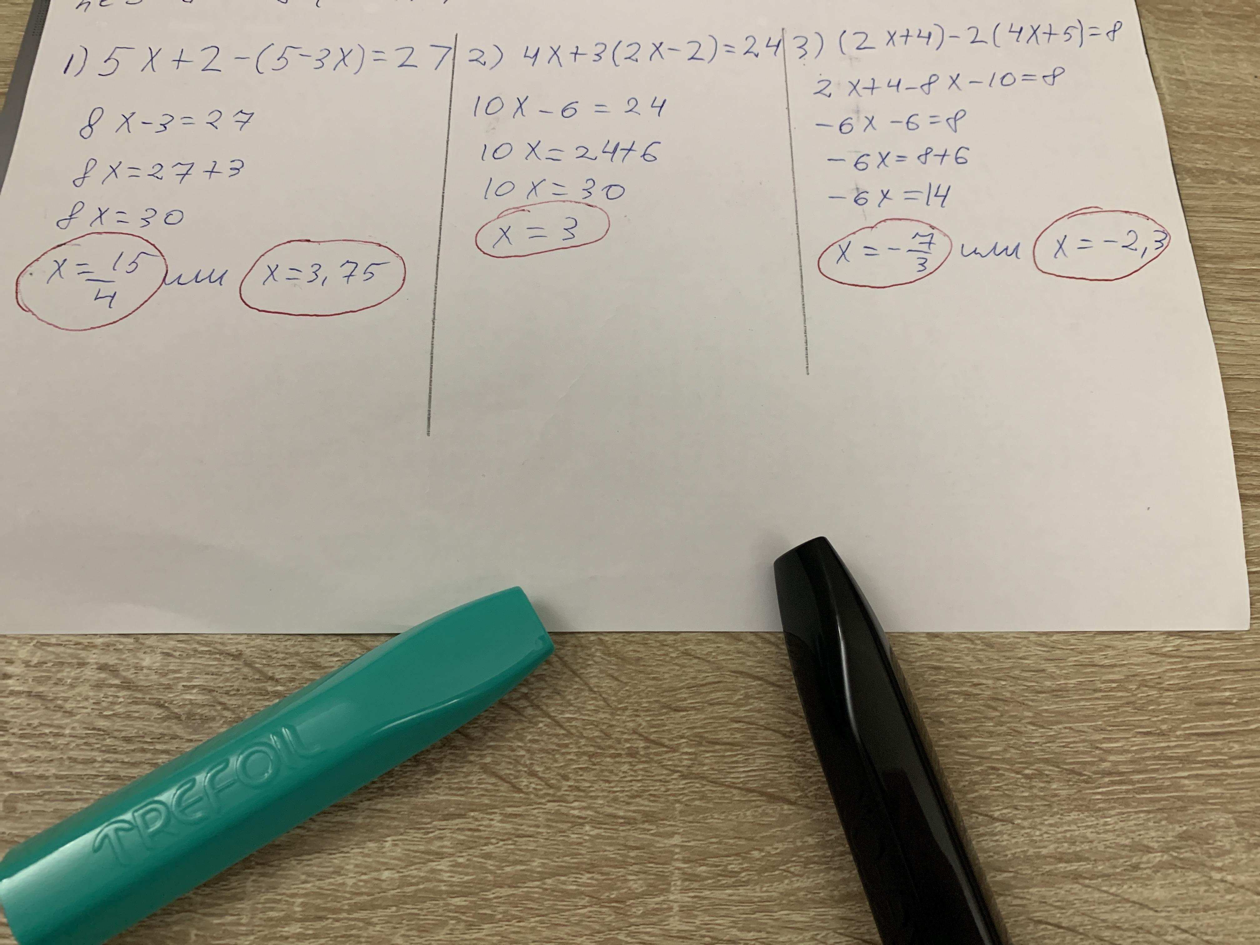 (когда перед скобкой стоит " - " то все плюсы и минусы чисел меняются на противоположную когда скобка раскрывается, в данном случае +5 превратился в -5, а -3х в +3х)