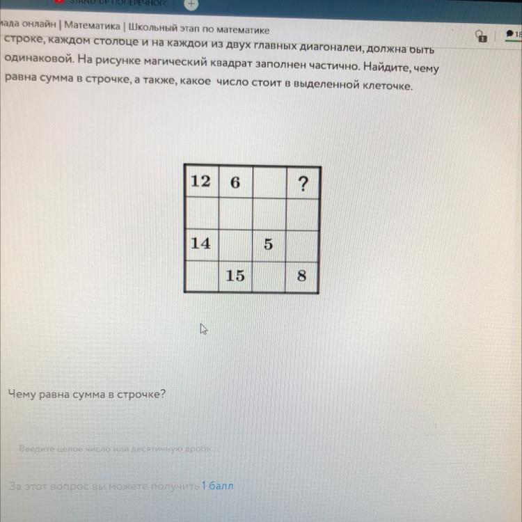 одинаковой. На рисунке магический квадрат заполнен частично. Найдите, чему