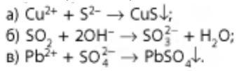 Ответ:1) CuCl2+Na2S=CuS +2NaCl 2)SO2+2NaOH=Na2SO3+ H2O 3)PbCl2+H2SO4=