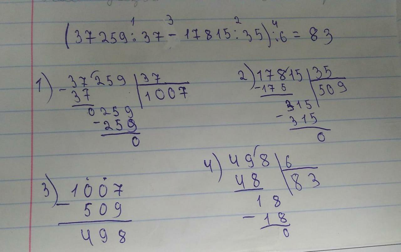 a) (37 259 : 37 - 17 815 : 35): 6=