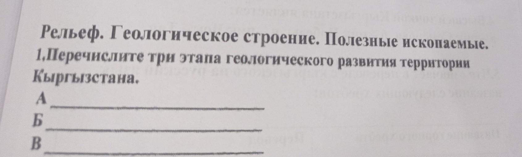 перечислите три этапа геологического развития территории Кыргызстана ?
