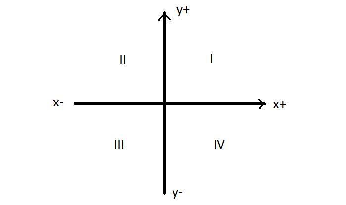Также есть четверти I II III IV, надо просто запонить их положение, против часовой стрелки