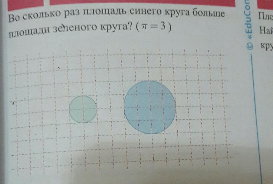 12:3=4 раза площадь синего круга больше площади зеленого круга
