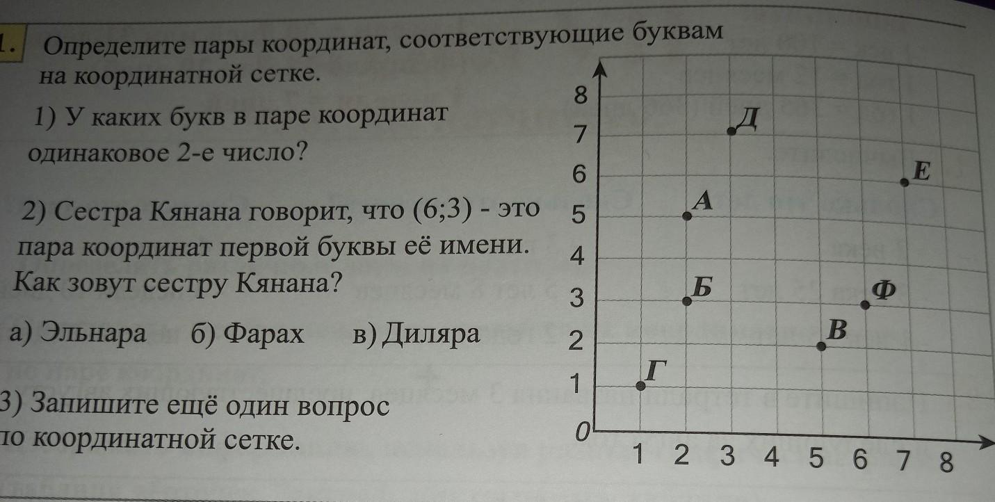3. Составьте слово из букв , имеющих координаты : (1:1),(2:3), (7:6)