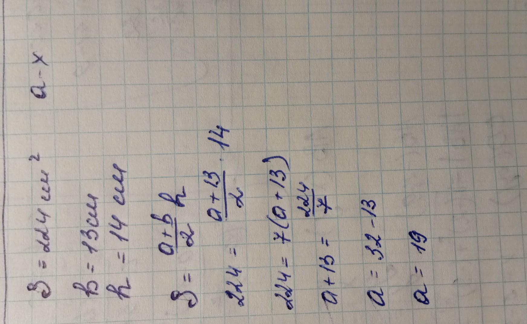 Площадь трапеции, изображённой на рисунке, равна 224, основание b=13, высота h=14. Найди второе основание трапеции.