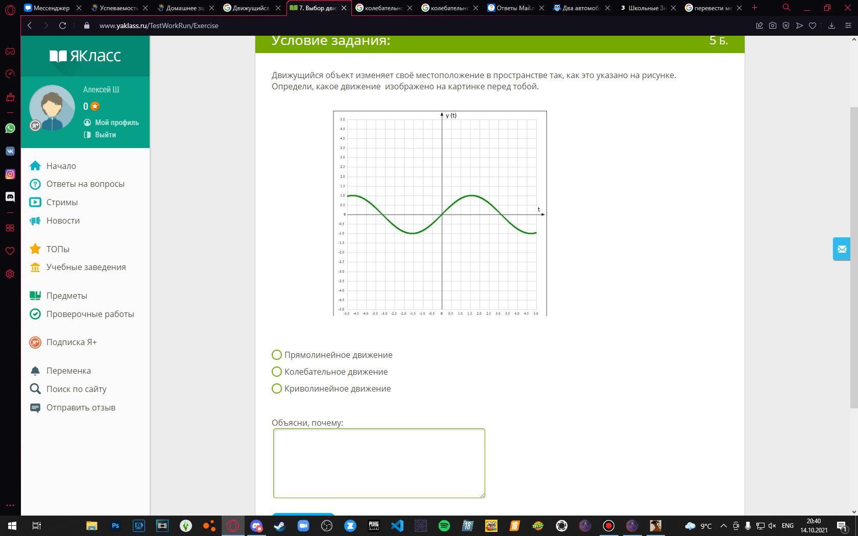на графике изображено движение , которое точно повторяется с течением времени, что как раз является колебательным