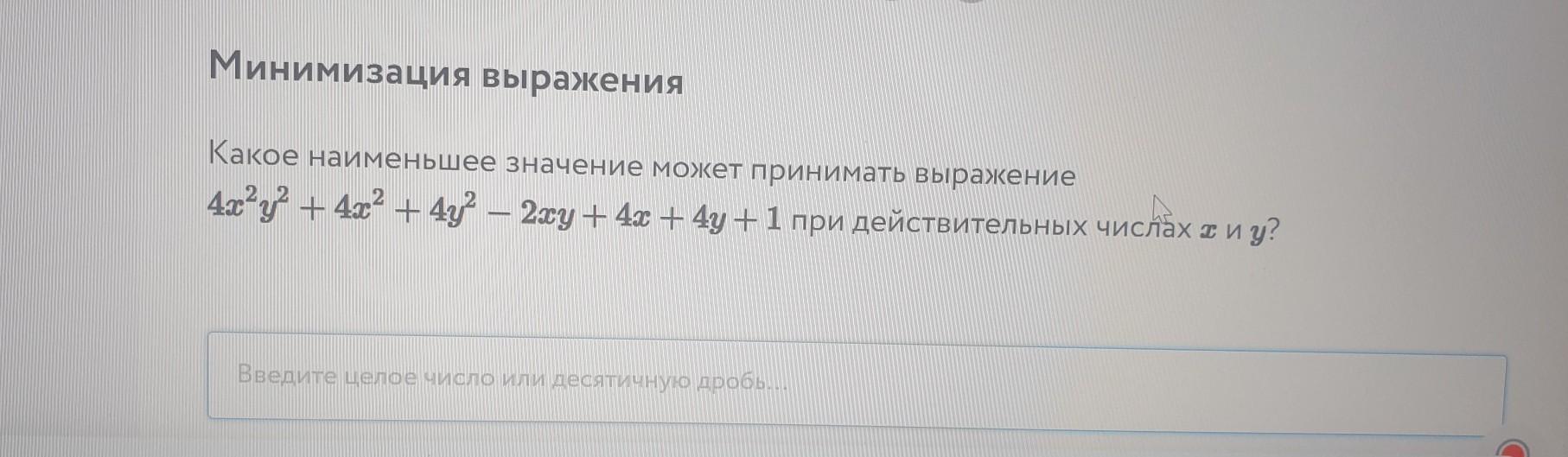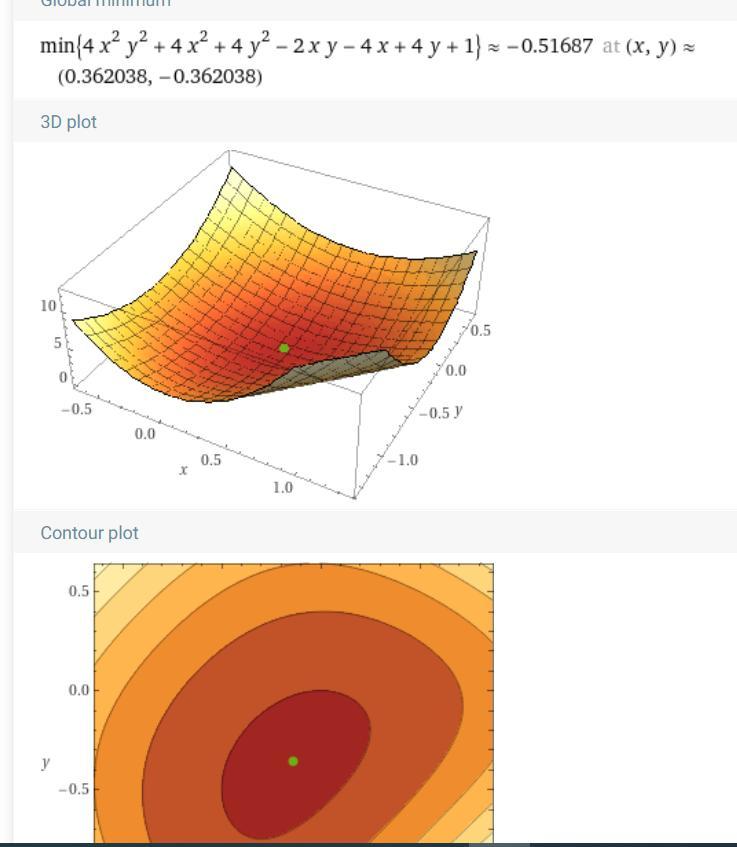 Минимум находим, решив систему частных производных по "х" и "у", приравняв их нулю.