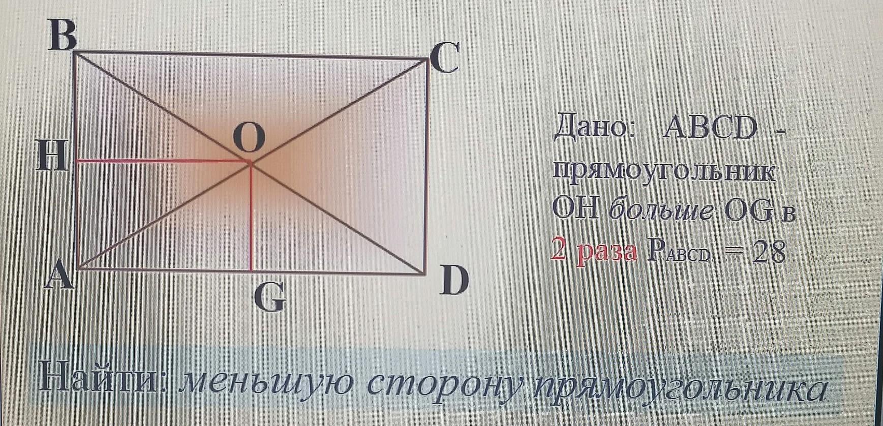 Якщо OG = x , то ОН = 2х . AD = 2 * OH = 4x ; AB = 2 * OG = 2x .