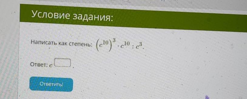 (c¹⁰)³·c¹⁰:c³ = c¹⁰ˣ³ · c¹⁰ : c³ = c³⁰⁺¹⁰⁻³ = c⁴⁰⁻³ = c³⁷